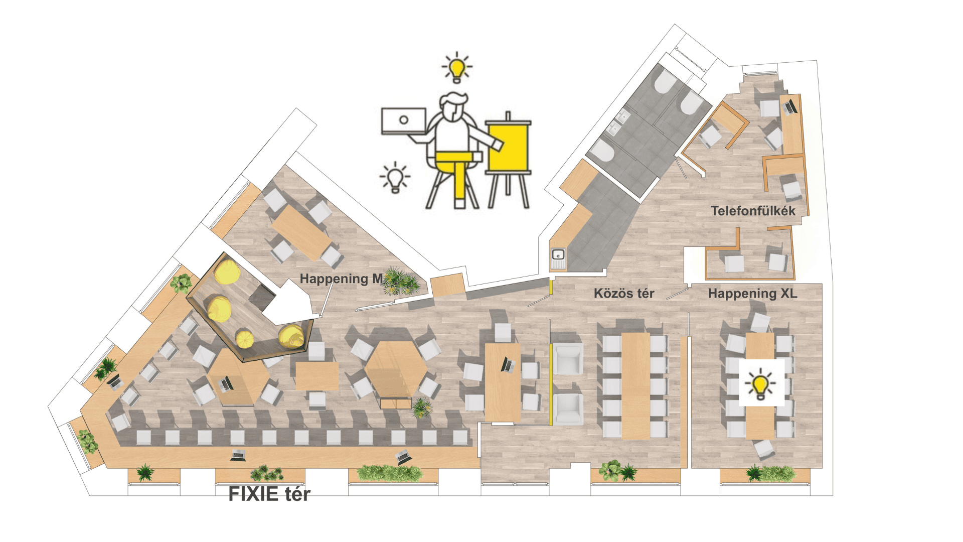 - Egyéb irodai szolgáltatások, infrastruktúra (nyomtatás, specialty kávé/tea, stb.)